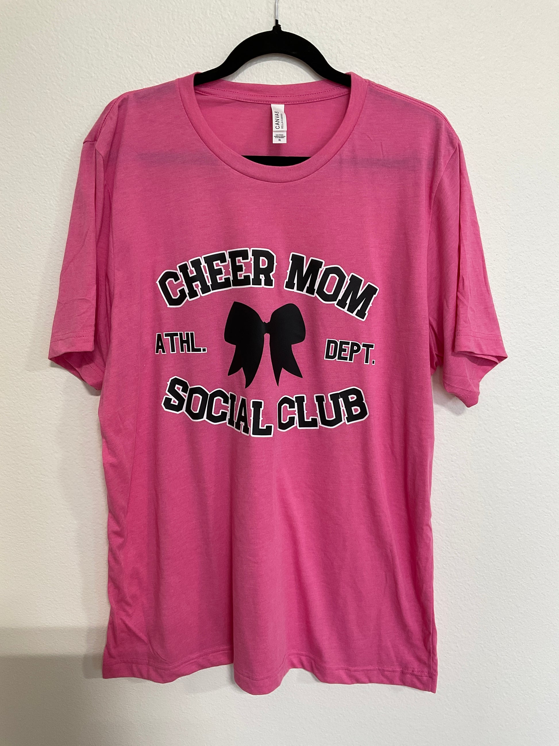 Introducing the Cheer Mom Social Club Graphic Tee, the perfect shirt for any proud cheer mom! Show off your support and love for your child's passion with this stylish and comfortable tee. Join the club and wear it to every game, competition, or practice. Let everyone know you're a proud cheer mom!