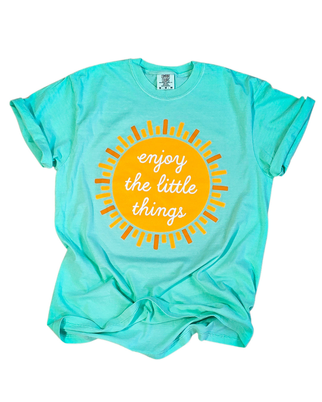 A daily reminder to appreciate life’s little moments! This soft and comfy tee features a cheerful sun design with the uplifting message: "Enjoy the little things." Perfect for casual days, layering, or gifting to someone who loves spreading positivity!
