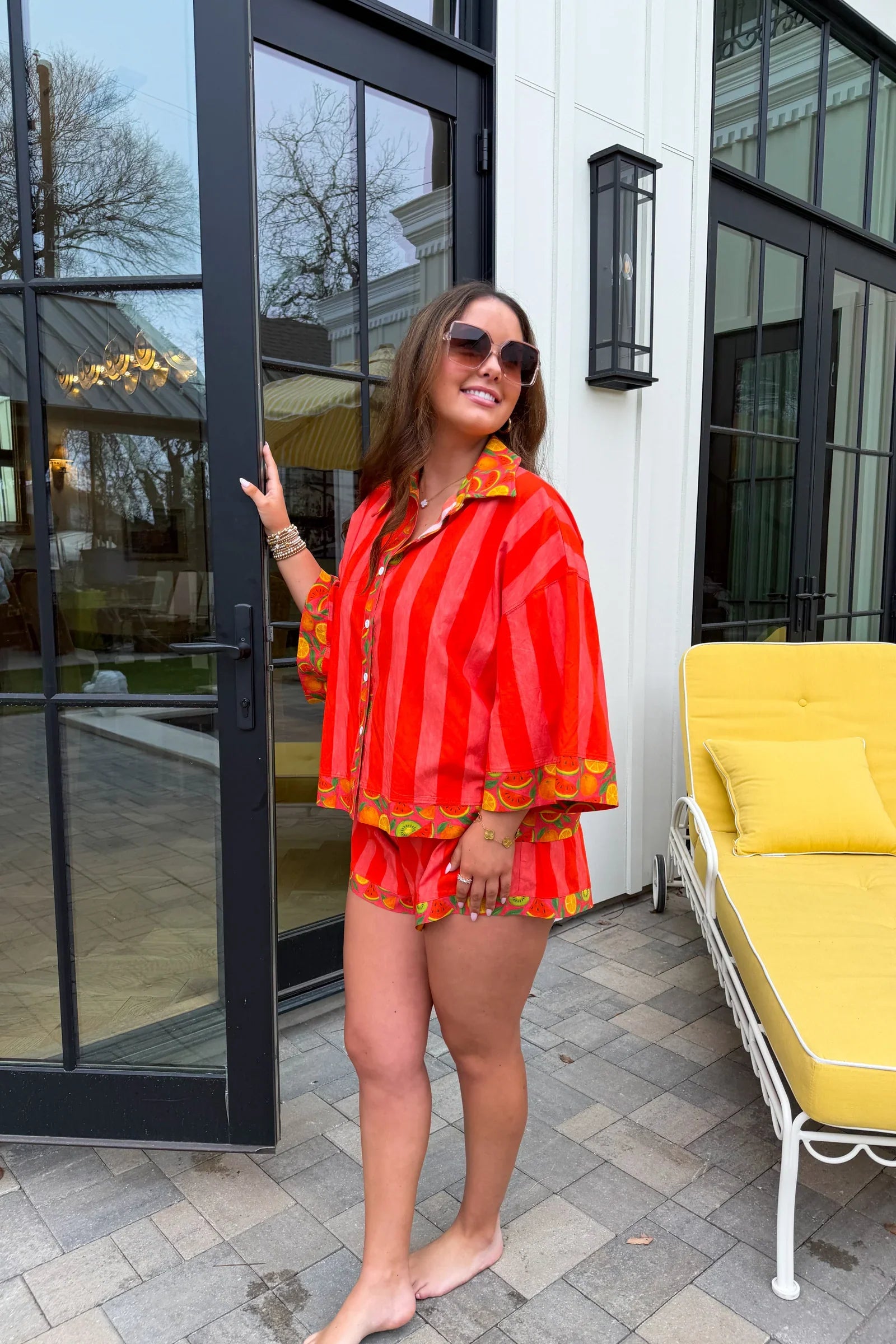 Add a pop of color to your wardrobe with these vibrant striped shorts! Featuring bold hues with fun citrus-inspired trim, these lightweight, breezy shorts are perfect for sunny days, vacations, or lounging poolside. The relaxed fit and elastic drawstring waistband ensures all-day comfort while keeping your look effortlessly chic. Pair them with our matching tanks or button up tops!